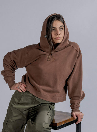 LOGO Embroidery Cropped Hoodie in Vintage Brown